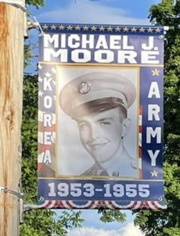 Cathy Moore Bell’s father, Michael, is memorialized along Main Street. Her mother, Shirley, longtime MCS guidance secretary, delivered the first of eight children, Michael Moore Jr., when the couple was stationed in California.