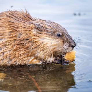 Muskrats grow to 2 feet long and 4 pounds. They make their dens along the shore.