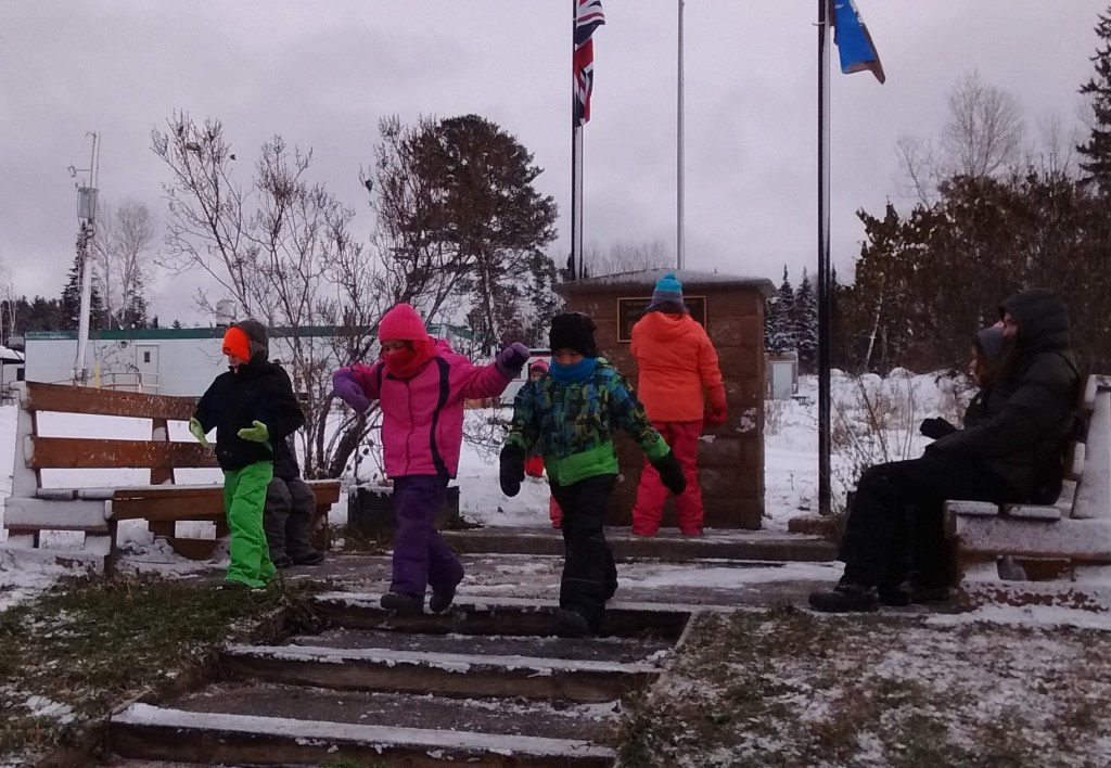 On Bear Island in Lake Temagami, Ontario, Remembrance Day in the small community school was well observed, with art, reading activities, etc. On Remembrance Day itself, the students walked a half-mile down the road to the memorial stone under the Canadian and provincial flags to participate in a small ceremony presided over by First Nations community elders. The memorial overlooks the lake, just as the Morristown stones overlook the St. Lawrence. Water serves as a medium for memory and the flow of gratitude.