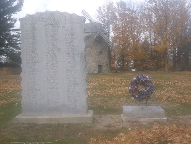 In the little river village of Morristown – I persist in calling it the village although we are technically a hamlet, having been dissolved and absorbed into a township, and no longer allotted a mayor – Chapman Park overlooks the St. Lawrence River. The park contains an historic stone windmill, a tennis/pickle ball court, assorted playground equipment and bathroom, and the Veterans Memorial Stones.