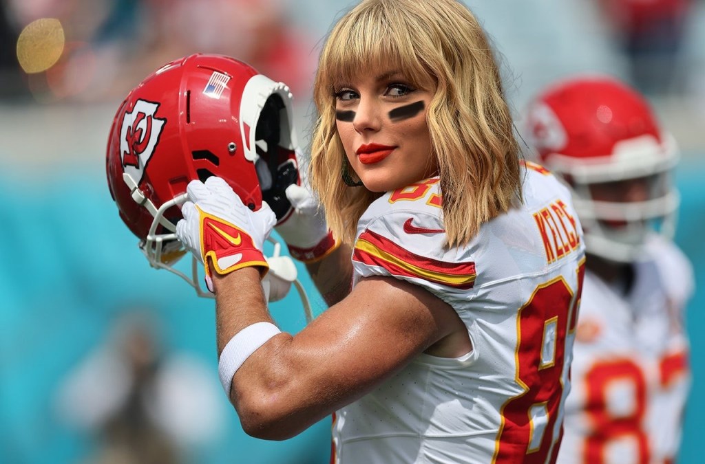 I swear Taylor Swift is following me. I turn on the TV and she is frolicking like a high school cheerleader in a Kansas City Chiefs luxury suite.