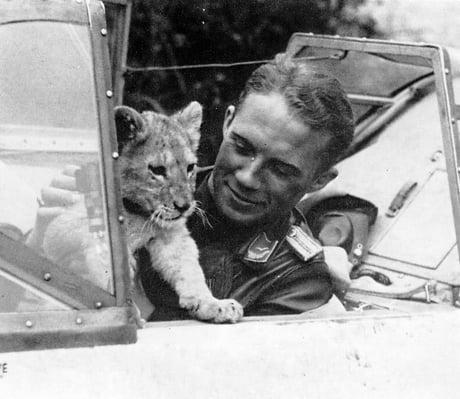 At 22, he joined the Luftwaffe in 1936, and within two years made lieutenant. He espoused the flashy flyboy role, keeping a pet tiger as his squadron’s mascot and charming his colleagues during the Battle of Britain. He was considered an ace by 1940 with nine kills of British aircraft and was awarded the Iron Cross by Hitler.