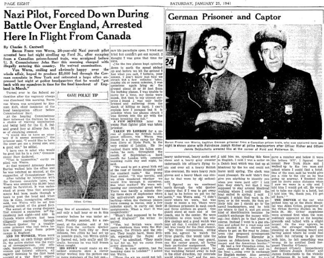 About half a page was devoted to the arrest of German Luftwaffe pilot and escapee on Page 8 of the Ogdensburg Journal on Jan. 25, 1941. The United States was still 11 months away from entering World War II.