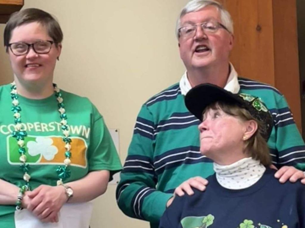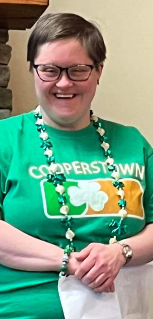 That brings us to St. Patrick’s Day 2024. I recruited her first speech teacher, Barb Larkin Babiarz, to accompany Katie, figuring she’s Irish, she taught Katie how to speak, and Katie seemingly has talked non-stop for the past 37 years. She was primed to perform, but I hesitated, thinking I risked exposing her to ridicule.