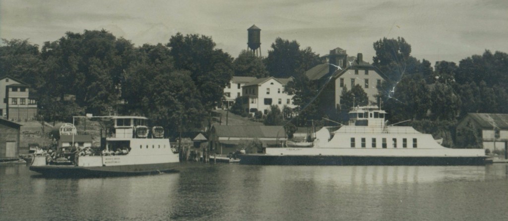 In the first season, the company earned a $2,000 profit on revenue of $5,800. The next year, profits jumped to $4,400 on $7,200 in revenue. Cross-river traffic remained steady, but the rise of the automobile changed the business plan. Frank Scott realized he needed to accommodate cars and trucks so a larger, wooden boat, John Webster, was commissioned in 1916 and built at the St. Lawrence Boatworks, once the site of Dave Angrove’s bar and The Harbor Inn. Names like Cree, Seele, Whitmarsh and Jellie were principal builders.