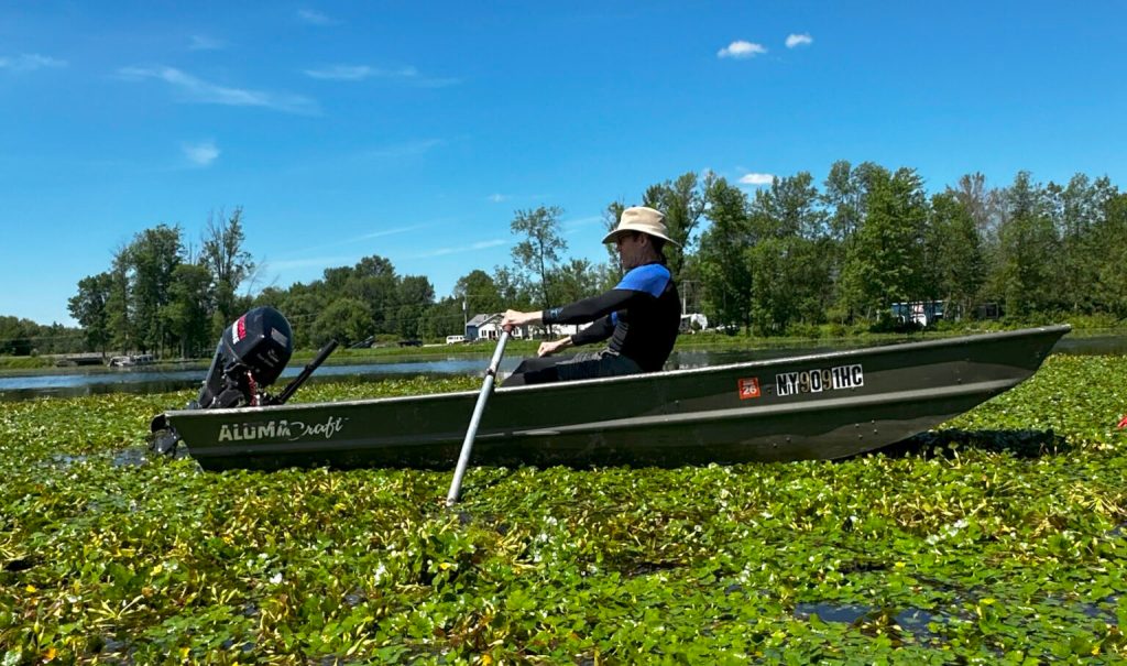 He said shoreline dwellers can address the issue too. From a boat, pull the plants from the water’s bottom. Bag the plants and dispose of them in the trash. Then contact his office (bbaldwin@stlawu.edu) so researchers can log the site.