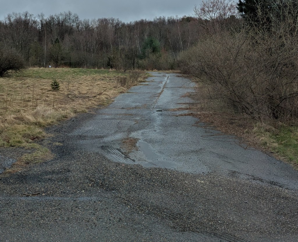 The only sign of life was a single unit of a former row house, with vehicles and toys in the yard. Buttresses were built along the side where it lost the support of razed homes that straddled it. Centralia’s land remains unstable, and the smoldering fire continues to release toxic gases.