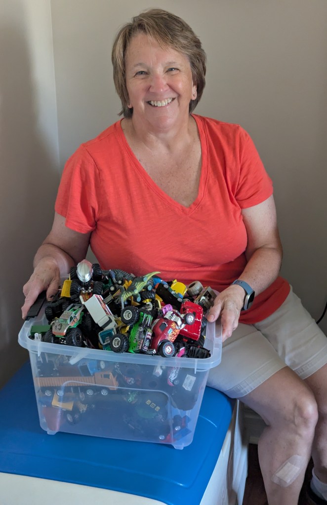 “Did you see that bin of Matchbox cars that I snagged for Wes? They would have ended up in the trash.’’