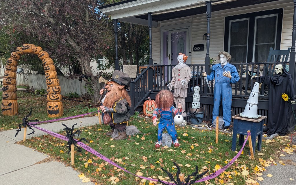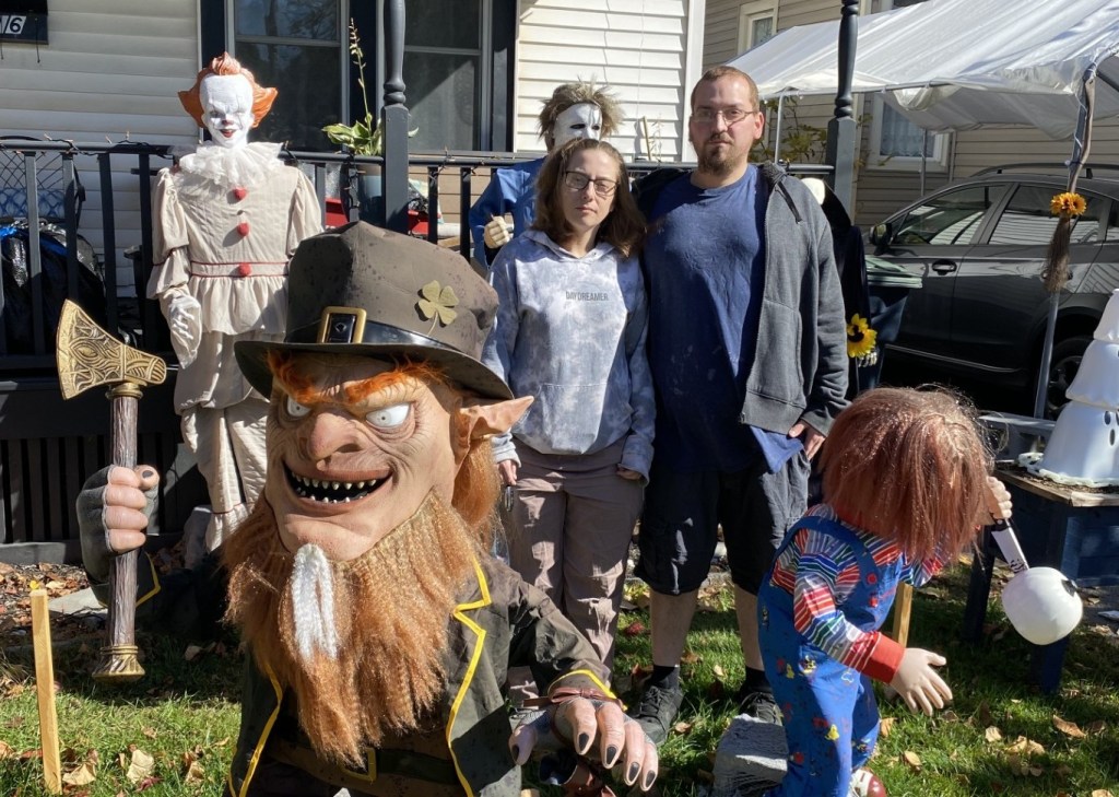 Baker does most of the decorating, but together they have assembled a cast of figurines that include a Chucky doll, robed skeleton, Michael Myers slasher, killer clown, ax-wielding leprechaun and an arch of demonic jack-o-lanterns.