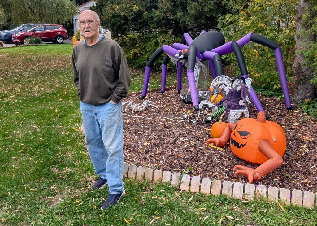 On Richardson Road, Haley displays a showcase of figurines, but the centerpiece is an inflatable giant spider that shimmies and shakes in the breeze.