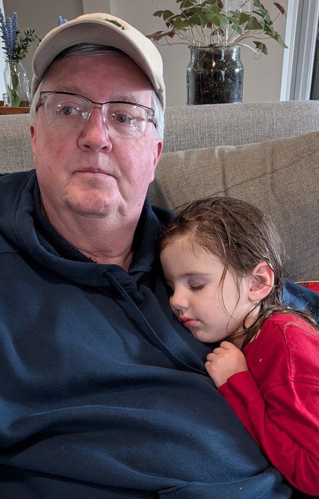 Two days later, with Viv suffering from an ear infection and conjunctivitis (pink eye), she crawled back onto my lap and soon the book folded, the head nodded and the nap began. Two more hours snuggled against her grandpa’s chest. These are blessings you can’t turn down.