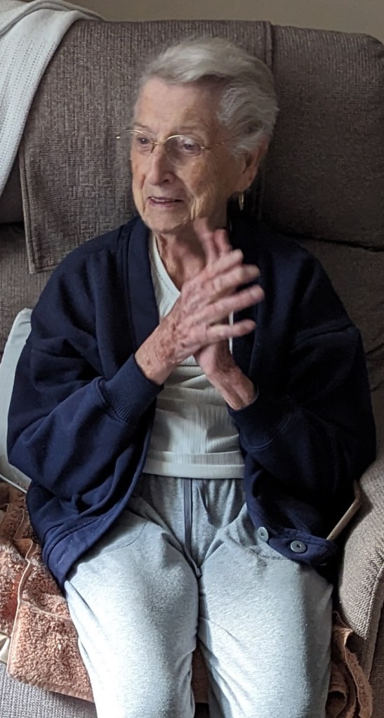 Rosemary knew of death from a young age. Her sister, Katherine Norma died from ptomaine poisoning two years before Ro was born. When Ro was 7, her grandfather was operating a railroad handcar and was struck and killed by a truck at a highway crossing. As a 31-year-old, she lost her father. He was tarring potholes on a state highway when he was struck by an inattentive driver. More recently, her friend and living companion of 40 years died, but Covid pandemic rules prevented Aunt Ro from entering the nursing facility. Ro held a vigil outside her window.
