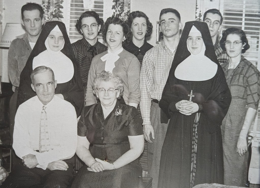 Aunt Ro served for several years as a Catholic nun and we feared her stern demeanor whenever she arrived in her black habit. Seemingly, she never made a mistake. On the day Sister Mary Nora dropped a full bowl of cake batter and the pottery shards and chocolate cake mixings scattered everywhere, my sister, also Mary Nora, had to run from the room to conceal her laughter. You never, ever disrespected the nuns.